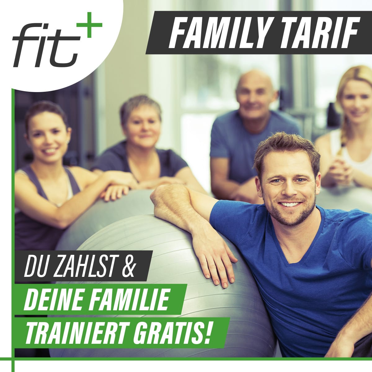 Werde jetzt Mitglied bei fit+ und lass bis zu 4 weitere Familienmitglieder kostenlos mit trainieren.